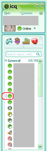 Používám ICQ klienta 6.5 a někteří lidé v seznamu kontaktů mají čas od času u své kytičky takové paprsky, jako když vysílají, viz obrázek.