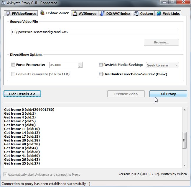 Ve složce, kde je nainstalovaný Avidemux, si najdu a spustím avsproxy_gui.exe