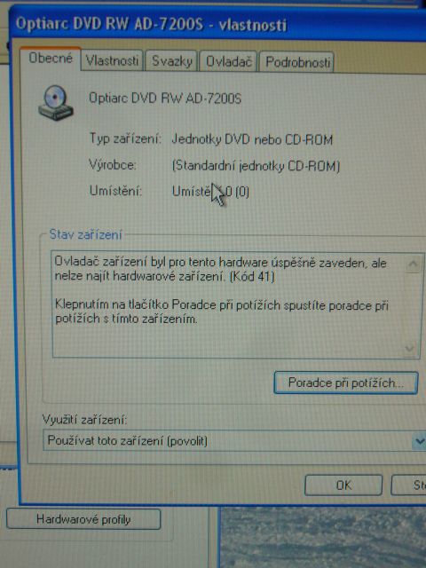 Myslím že ano,ve vlastnostech jsem našla u jednotek DVD nebo CD - ROM vykřičník. Přikládám foto chyby