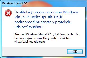 Ze stránek microsoftu jsem si stahnul virtual windows XP nainstaloval jsem ho ale když chci spustit Prostředí Windows XP Mode tak mi to vyhodí chybu (viz přiloha) když dám ok tak se to vypne nemá někdo zkušenosti s timhle prográmkem? Nebo by se našel někdo kdo by poradil budu rád za každou radu