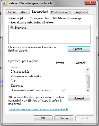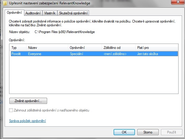jak jsem psala, když dám změnit oprávnění, tak je tam ta samá tabulka, s tím že oprávnění je "speciá…