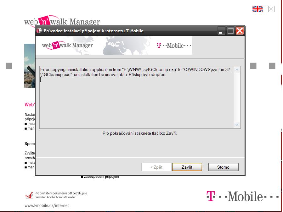 kdyz vlozim instalacni cd,spustim pruvodce instalaci pripojeni k internetu T-mobile objevi se tato chyba (viz.obrazek 1) ale pokracoval jsem v instalaci a pri instalaci se ukaze dalsi chyba (viz.obrazek 2) zkusil jsem instalaci zopakovat a probehlo to v pohode ale pak kdyz jsem se chtel pripojit k internetu objevilo se toto (viz. obrazek 3)..nevite co a jak nastavit at by to fungovalo???Dekuji za pomoc