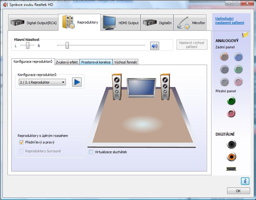 ovšem ten správce zvuku co máš ofocený z XP tam je trochu jinej.