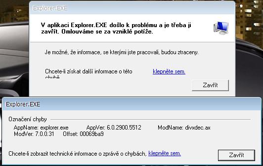 Zdravim,mám problém s tím že když najedu do složky Videoklipy tak mi vyskočí chyba exploreru a ještě před hodinou mi to nedělalo a nic jsem neinstaloval a ani neodinstaloval.Když nejedu třeba do složky kde mám hudbu tak se nic nestane.Zkoušel jsem restartovat PC a pak bod obnovení o jeden den zpět a nic.Udělal jsem screen.