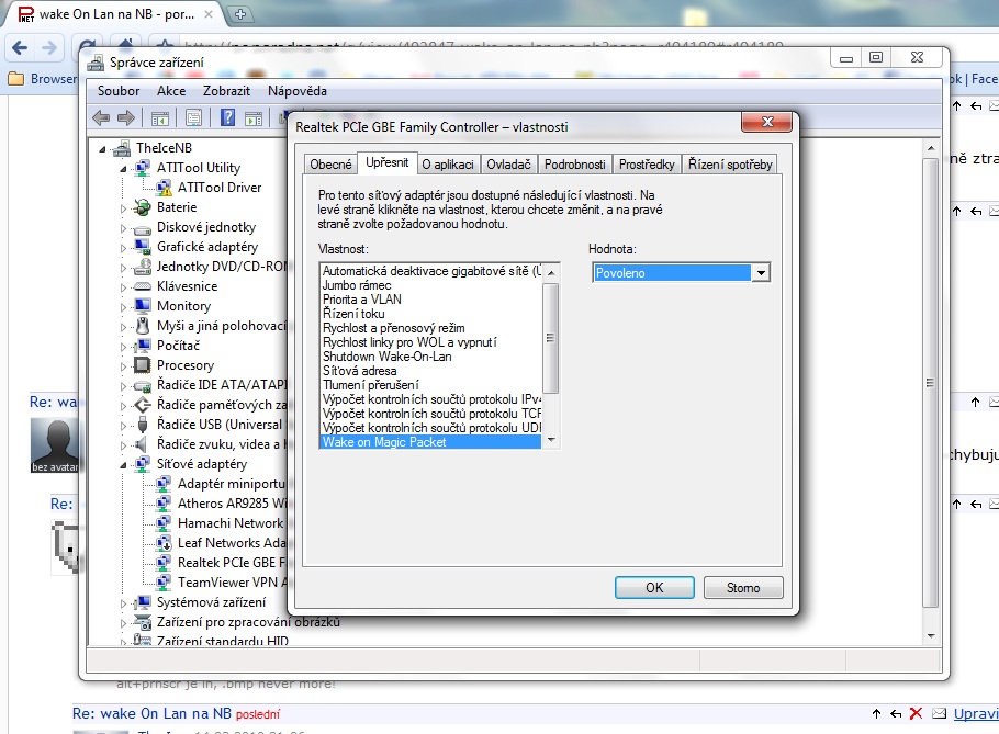 a pak jsem ještě v tom posledním menu našel kolonky - Povolit zařízení probouzet PC a od toho - Povo…
