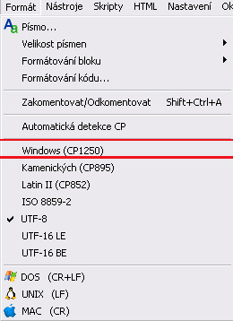 Ano, to jsem pochopil... Nicméně nefunguje to :( (Ani windows-1250, utf-8(16), iso 1(2) .... nic z toho) :(
