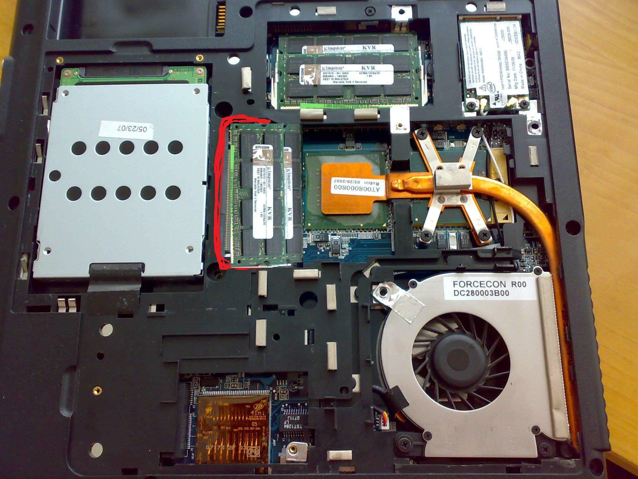 Kdy notebook rozeberu, tak je tam na zakladní desce nějaky volný slot, viz foto