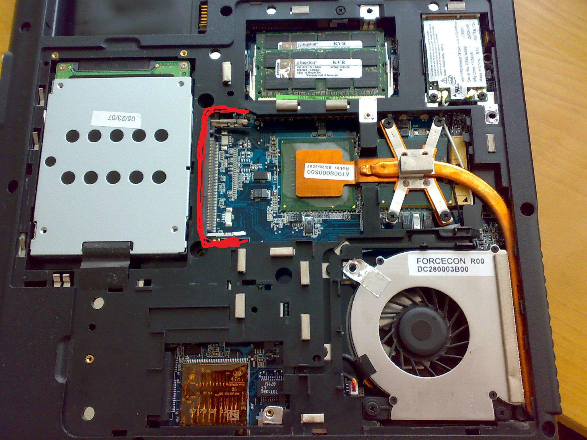 Kdy notebook rozeberu, tak je tam na zakladní desce nějaky volný slot, viz foto