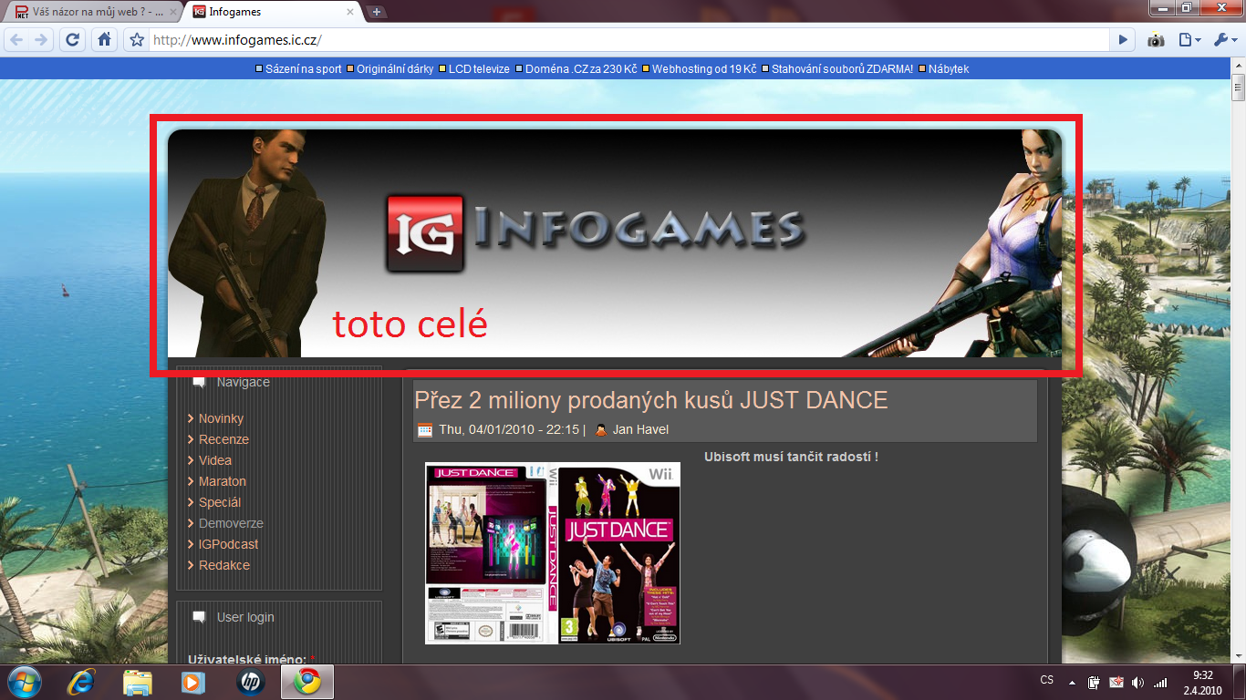Myslíš jako aby to odkazovalo na hlavní stránku ? (tedy infogames.ic.cz)