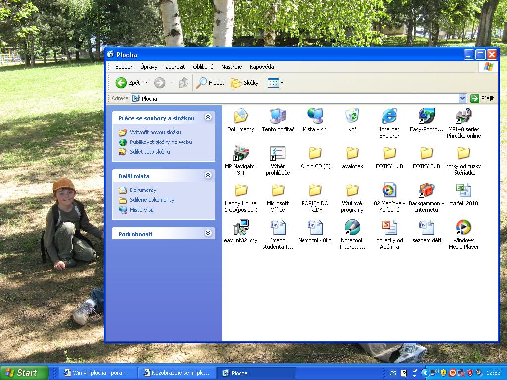 Zkuste to spuštění Exploreru, jak jsem psal výše. Možnost číslo dvě: ve Vlastnostech Plochy (pravý myšítko na Plochu) chybí zatržítko u položky "Zobrazit ikony na Ploše".