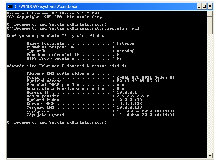 znamenám si: router zyxel má 10.0.0.138, a poskytuje dhcp. nastavení nebudeme měnit.