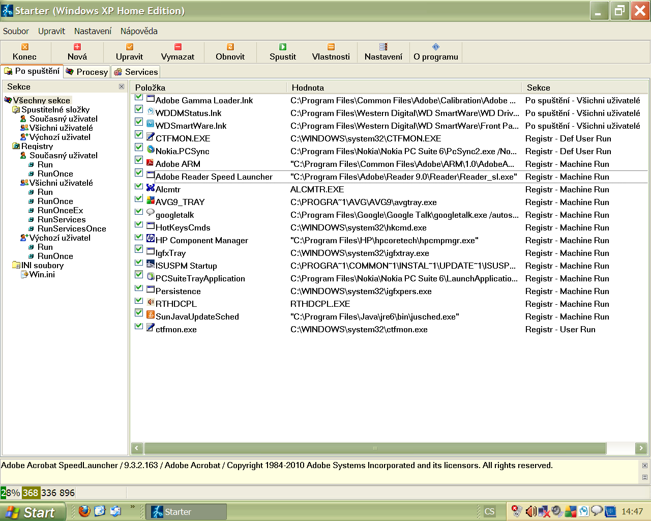 Aniž bych se na ten obrázek díval, jistě tam bude Adobe zrychlovač a Java update scheduler.