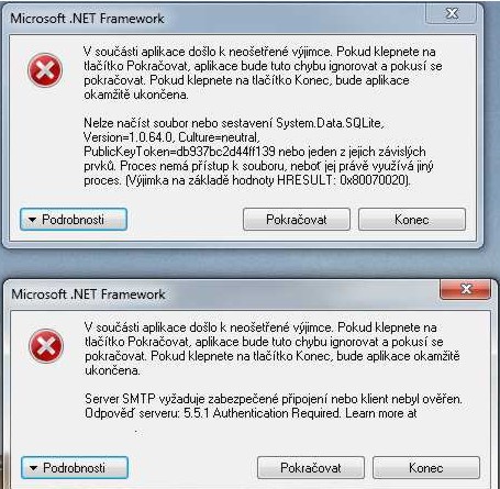 To druhé chybové hlášení se týká emailu-Thunderbirdu, tam také nevím co s tím, abych to napravil.