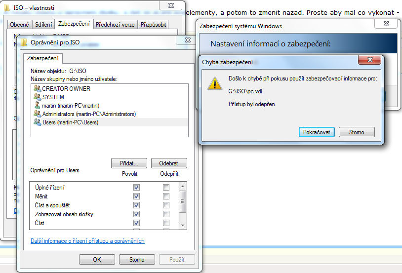 Takze mas blbo opravnenia zlozky, co je aj logicke ak bola vytvorena na inom PC.