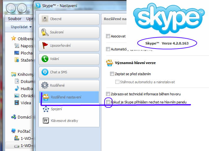 Super, ještě lepší, ale nejdřív jsem skype musel aktulizovat, proto jsem to v nastavení nenašel