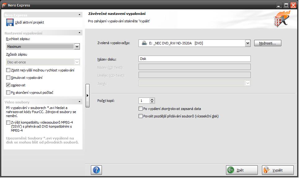 Dneska jsem chtel vypalit malemu synovcovi Teletubies 2x cca 700MB (641 a 750MB) na DVD... Klasicky jsem dal do mechaniky DVD-R 16x a zvolil NERO Expres a Datove DVD (jak to delam standartne) po pridani souboru a zahajeni vypalovani vyskoci okno s chybou viz. jpg.. Ikdyz sem snizil rychlost zapisu na 4x tk furt to same a ikdyz sem odskrknul povolit pozdejsi pridavani tak se take nic nezmenilo.. nevite cim to muze byt?