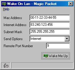 Mějme za to, že router má venkovní IP adresu 83.240.123.456 (vnitřní 192.168.1.1) a počítač, který bych rád zapínal, má IP adresu 192.168.1.2 a MAC adresu 00-11-22-33-44-55.