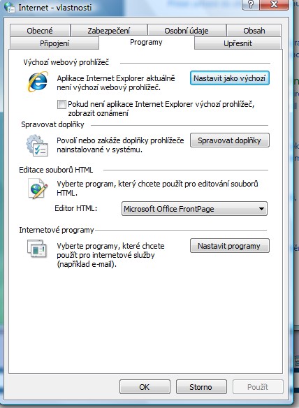 Bude to tím, ale když se podívám do nastavení tak mi tam nabízí jedině možnost nastavit IE. Potom to funguje pro IE.