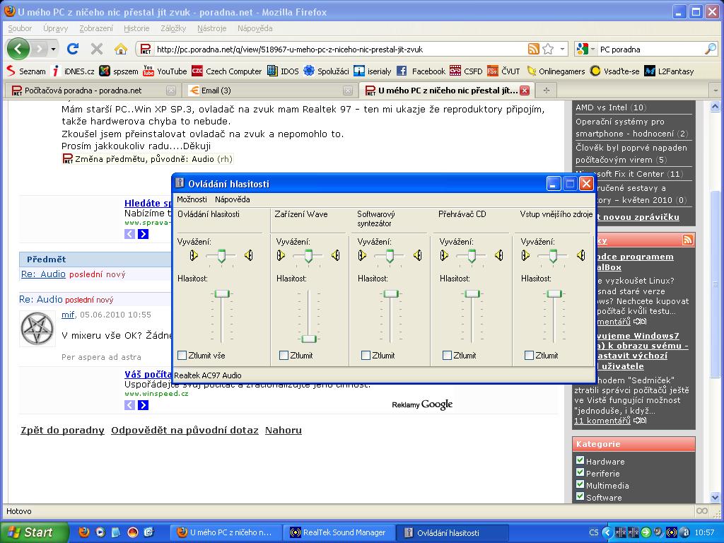Přidat otázku mezi oblíbenéZasílat nové odpovědi e-mailemVyřešeno U mého PC z ničeho nic přestal jít zvuk