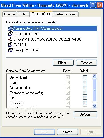 ideální je mít to podle toho druhého obrázku, kde jsou nastavena práva pro skupinu "administrators"…