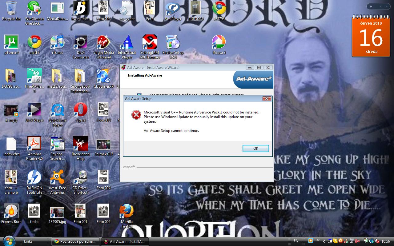 konkrétně k chybové hlášce od ad-aware: tento soft je bezcenný šmejd, a v pohodě se bez něj obejdeš.…