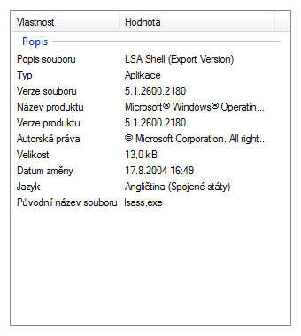 Ve správci úloh je uveden jako lsass.exe, tak nevím jestli je to malé L nebo velké I.