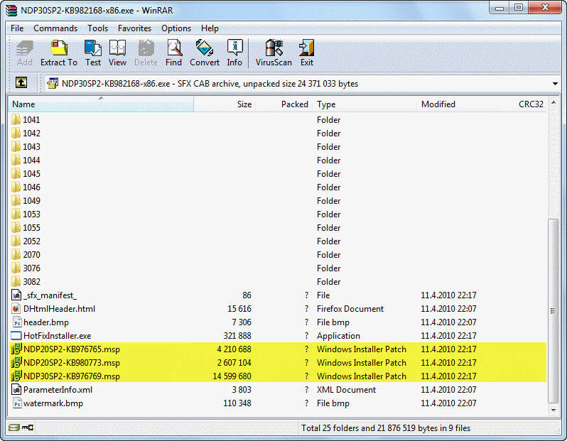 Tak druhou a třetí aktualizaci KB982168 a KB979909 už mám staženou na disku, ale jsem překvapená, že nemohu nalézt tu první, KB976576. Jak je to možné, když už ji údajně v systému nainstalovanou mám?! Tj. existovat teda musí.