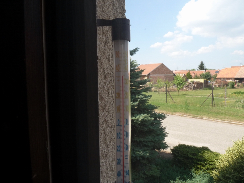 My klimatizaci nemáme, včera jsme měli v baráku 29°C, dneska 27°C ]:(. Venku na stínu včera 14:00 35…