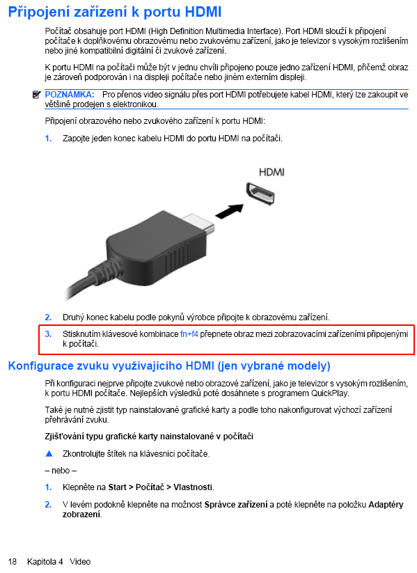 Vypnutí obrazu na notebooku při propojení přes HDMI