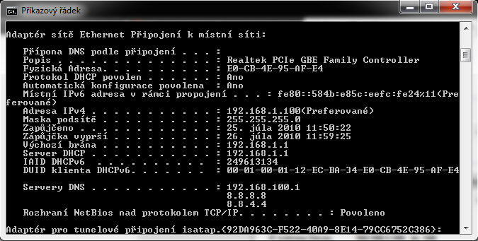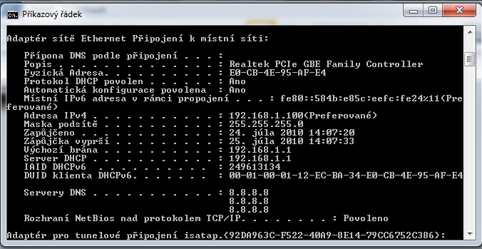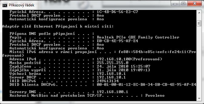 Tipoval som ze budes potrebovat screen z ipconfig -all tak som ho nascreenoval ako to vyzera teraz