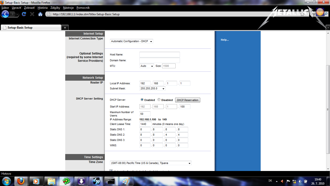 ok takze: v administracii routera som nastavil dns 1. na 192.168.100.1, 2. na 8.8.8.8, 3.na 8.8.4.4…