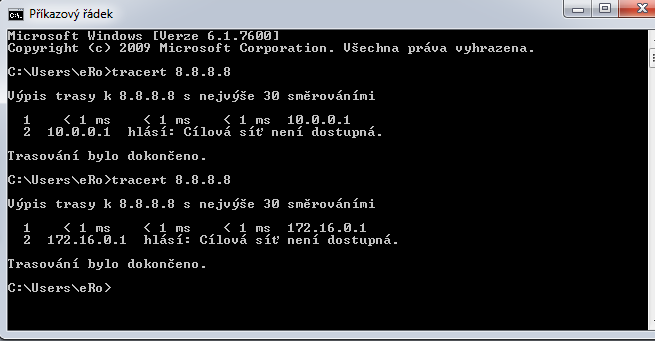 Odpoved od 192.168.1.1: Cilova sit neni dostupna.