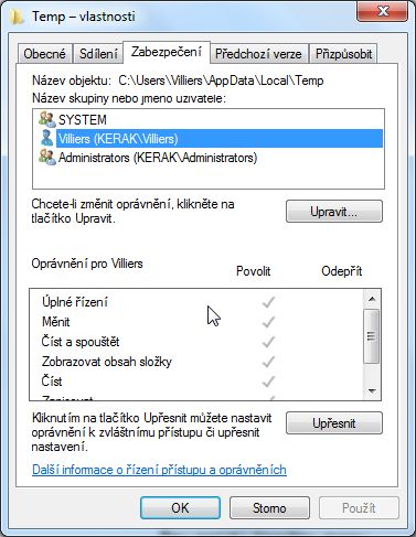 začínám podezřívat oprávnění pro temp, bo: