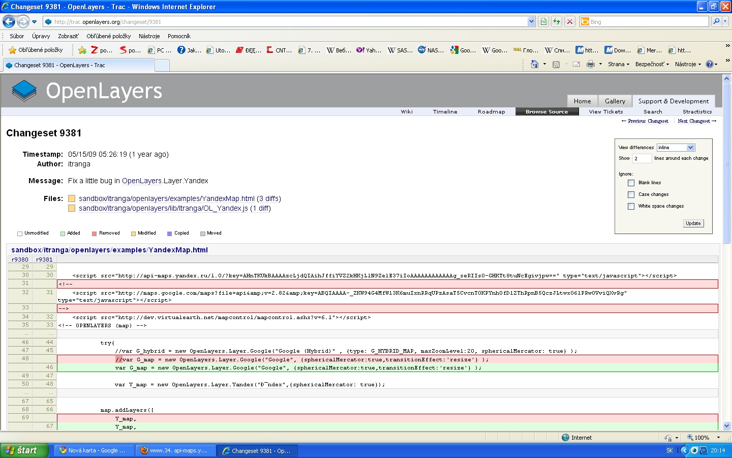 Ešte ma napadlo: v minulosti, kedy mapy išli, v ie8 niekedy pri prechádzaní ulicami (to je ten zelený ďalekohľad) mi vyhodilo hlásenie: ie musel v dôsledku pretrvávajúcich problémov s danou lokalitou (alebo serverom) ukončiť spojenie, na to sa mi obnovila východzia stránka maps.yandex.ru. To sa však stalo iba párkrát, a vždy iba v ie8 (v chrome nikdy).