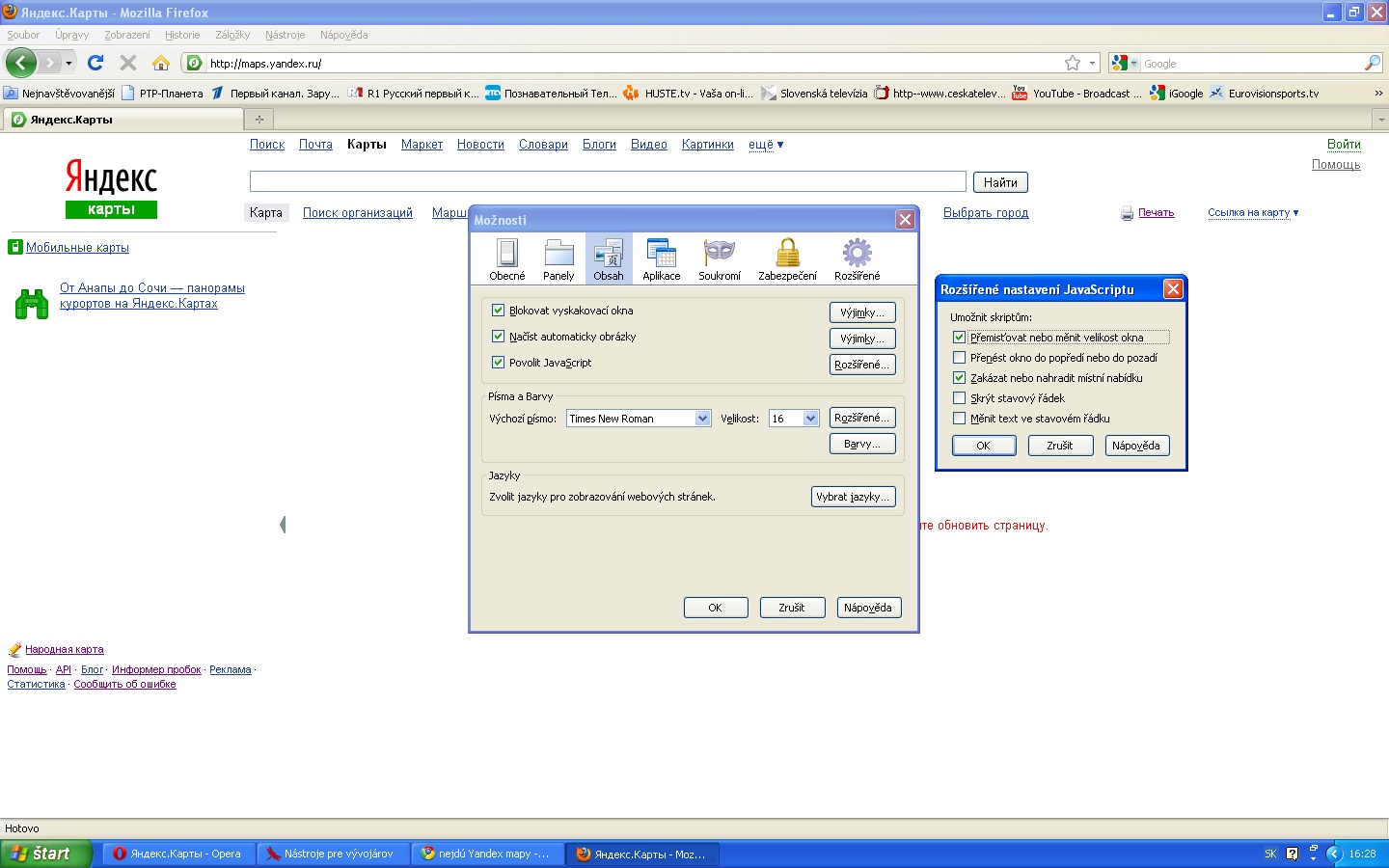 Odkaz 34. api-maps.yandex.ru som skúšal aj v iných prehliadačoch, mapa sa stále nezobrazuje.