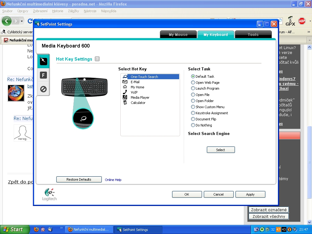 Nevim, zda to co je na obrazku s tim souvisi, ale proste vidm problem v tom software od Logitechu, ktery ma ovladat ty klavesy, musis zjistit, co s tim softem je, proc nebezi.