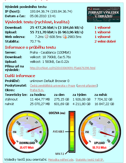 tak jsem provedl test rychlosti, kolik si můžu dovolit nastavit ten upload?