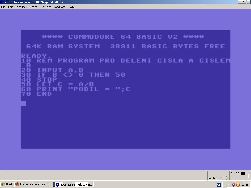 ,za příkazem 70 END sem dal ENTER a nic se nestalo,příklad je přesně podle knížky programování v basicu.Screen dole