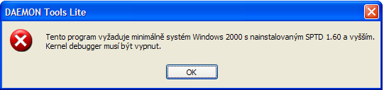 mám jistý problém s programem Daemon Tools Lite. Když ho chci spustit, vyskočí mi tato chybová hláška.
