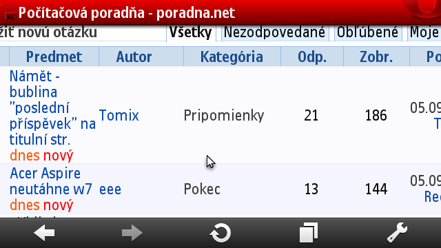 je to nějakej pátek, dva měsíce zpět třeba?Neříkám že to nemůže být chyba u mne, ale všechny jiné stránky jsou pořád stejné a fungují, tak jsem myslel, jestli se třeba nezměnilo něco v kódu poradny...