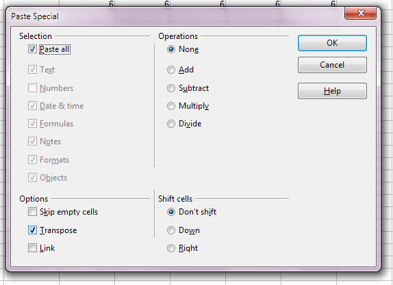 Prosím jak mám otočt požadovaný řádek/y/ tak aby vzniknul sloupec nebo vice řádku ve více sloupků v Open Offis org /2003/ proto že ,po stisknutí vložit jinak se mi zobrazí jine okno, mělo by se zobrazit transportovat a to tak se neděje.