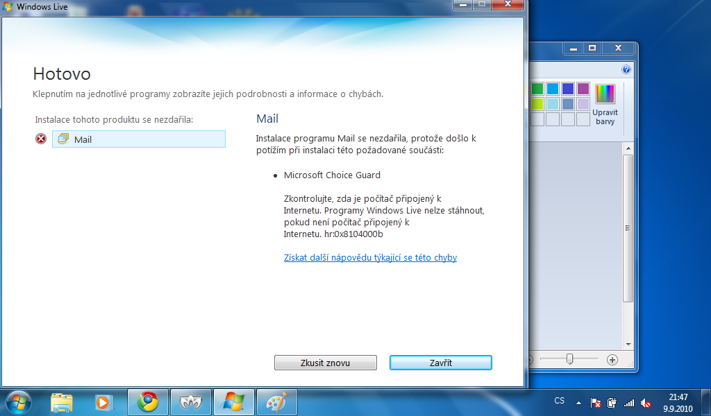 Zkus ten balík ze slunečnice jak píšu výš, tam by měl být celý Live Mail bez stahování z internetu.