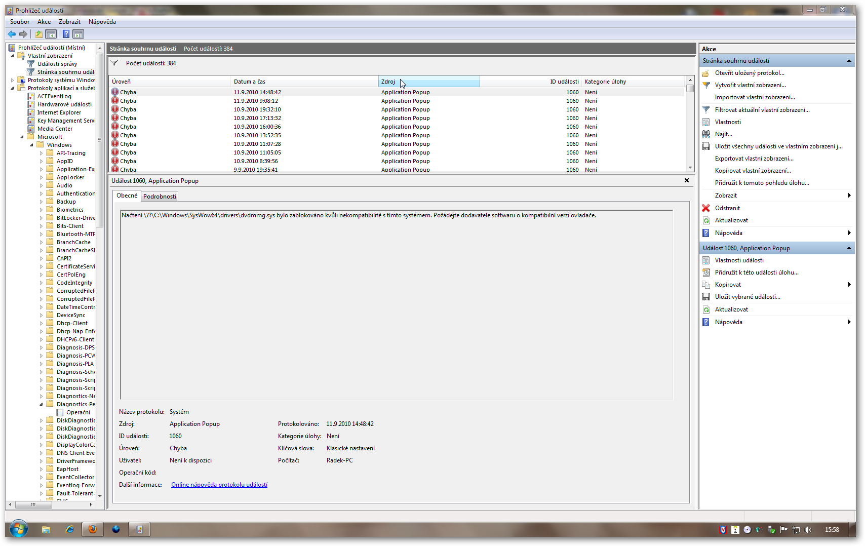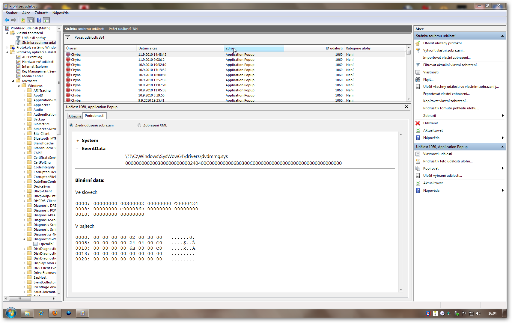za sedm dni 168 chyb z toho 23 krat-C:\Windows\SysWow64\drivers\dvdmmg.sys bylo zablokováno kvůli nekompatibilitě s tímto systémem. Požádejte dodavatele softwaru o kompatibilní verzi ovladače.