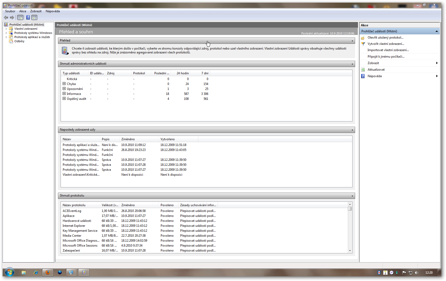 Tak znova - vypínáš PC v 12:38 10.9.2010, naskočí hláška, v prohlížeči si potom najdeš hlášku +/- z…