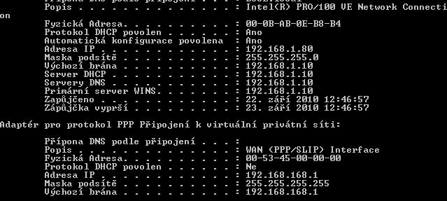 adresa klienta 192.168.168.1-255 je default po aktivování PPTP