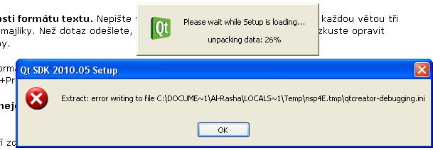 Nemůže to rozbalit. Je to (qt-sdk-win-opensource-2010.05.exe) možná poškozené, či nedokonale stažené…