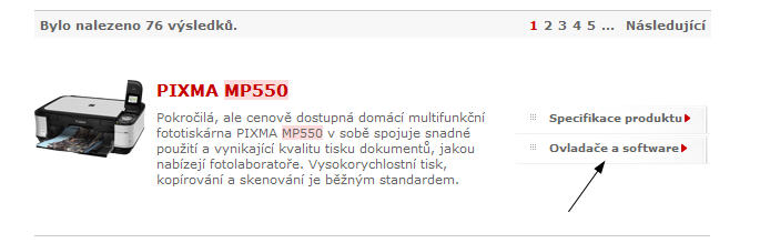 Ešte jeden tip aby si nepovedal: V pravo hore na tej stránke je políčko "Hledej" - napíš tam MP550...