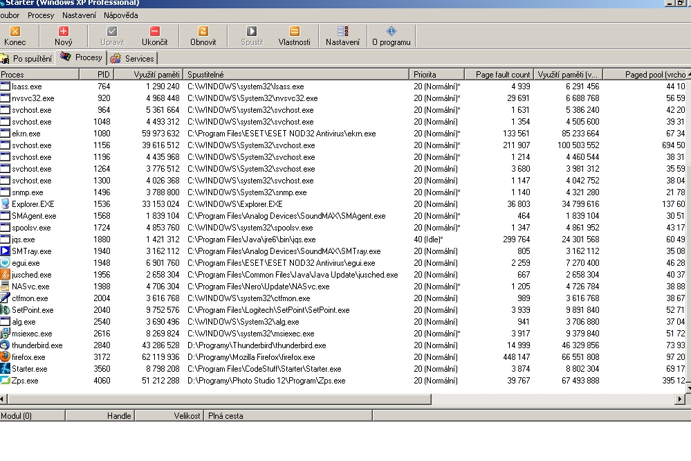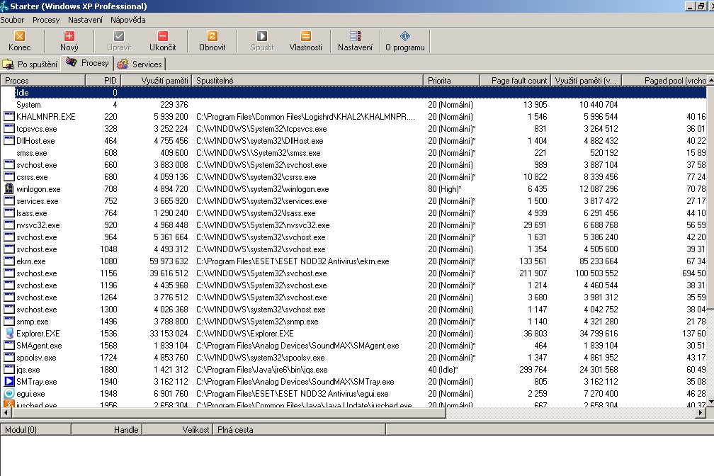 Zajímavé také je, že se mi vpravo na stav. řádku nezobrazují všechny ikony programů, které běží na pozadí. Např. NOD32 určitě běží, ale ikonka tam není.
