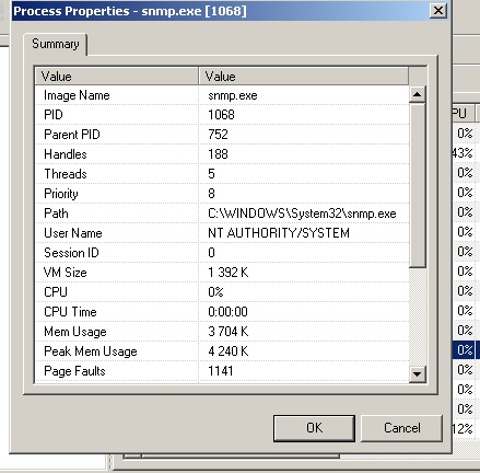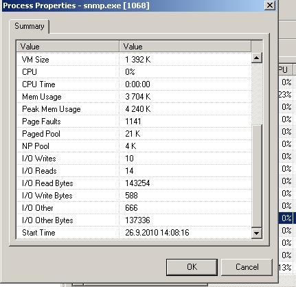 Nainstaloval jsem remote process explorer, screen je přiložen. Ten exáč podle mě spouští tu snmp funkci, jde to nějak odinstalovat nebo tak něco? Zakázat to nestačí, problém při nabíhání PC je pořád stejný.