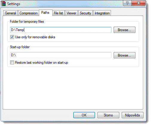 O co se teda vlastně snažíš? Ten program má nastavení, jde tam dokonce nastavit cestu pro ukládání dočasných souború (temp).